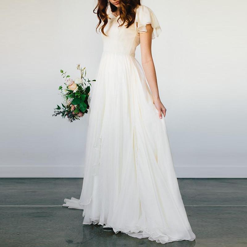 Flowy Chiffon Beach Wedding Dresses 2020 Short Sleeves Temple Bridal Gowns Long Informal Reception Dress Custom Size