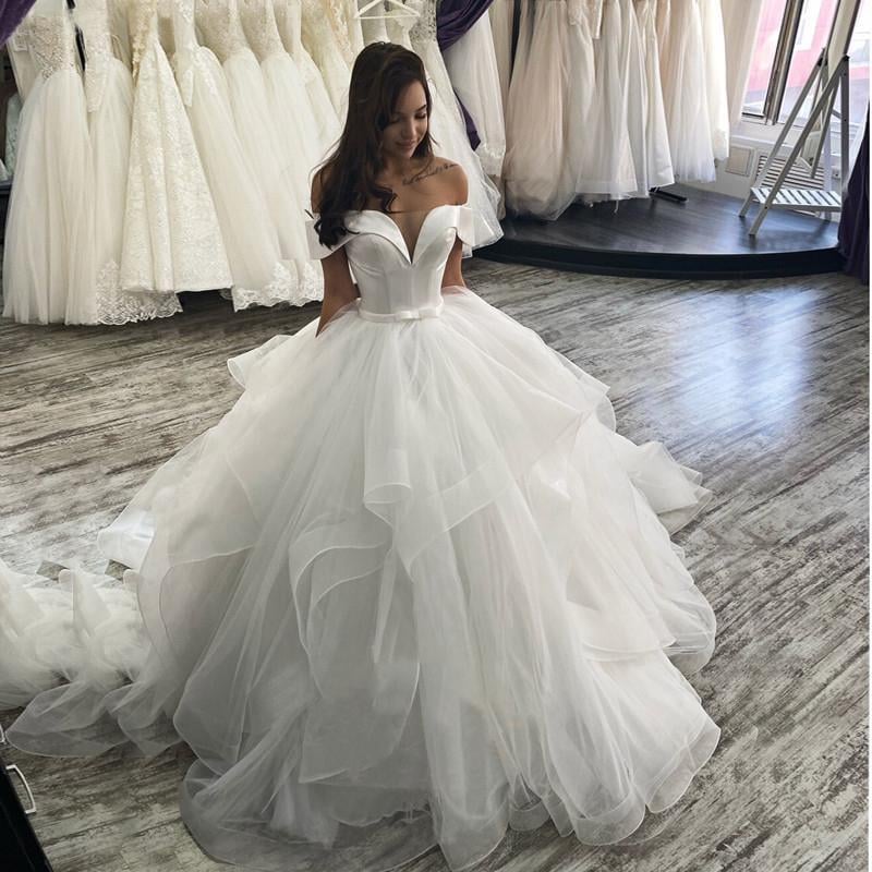 Ball Gown Wedding Dresses Off The Shoulder Corset Ruffles Organza Plus Size Wedding Party Dress For Bridal Gowns Vestido De Noiva