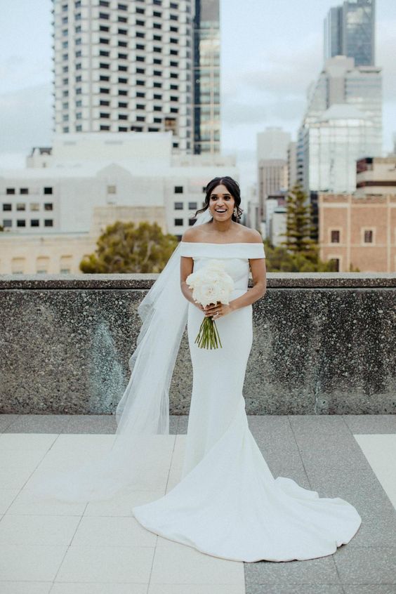 Sheath Wedding Dress, Strapless Wedding Dress, Satin Wedding Gown