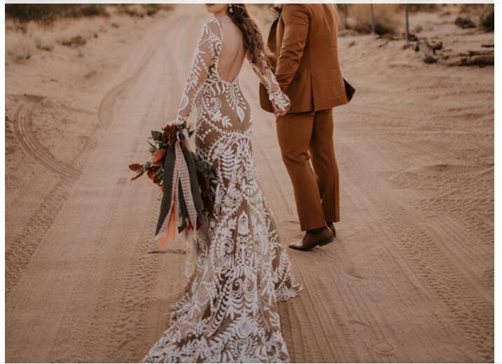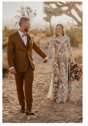 Champagne Mermaid Lace Wedding Dress Bridal Gowns