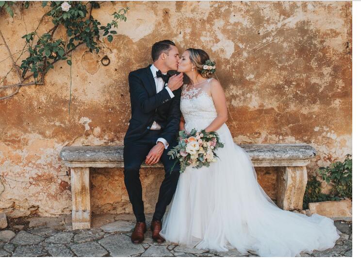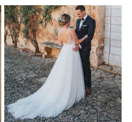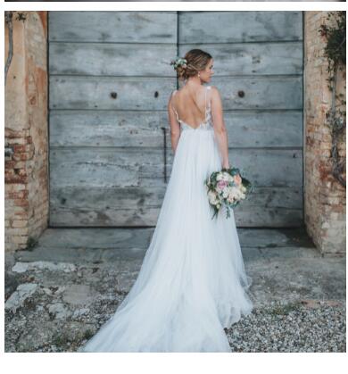 A Line Tulle Lace Appliques Wedding Dress Bridal Gowns