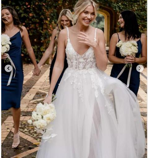 Elegant Ball Gown Tulle Handmade Flowers Wedding Dresses Bridal Gowns