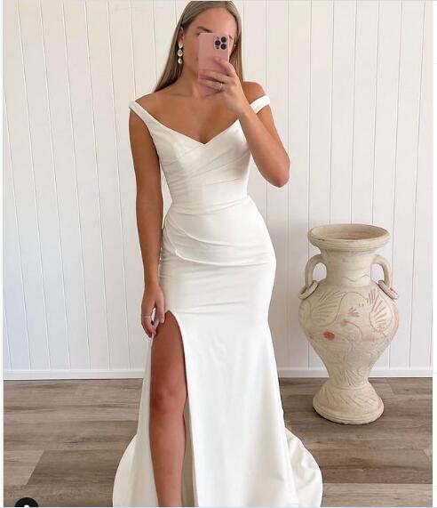 Simple Scoop Sheath Off the Shoulder Wedding Dresses Bridal Gowns