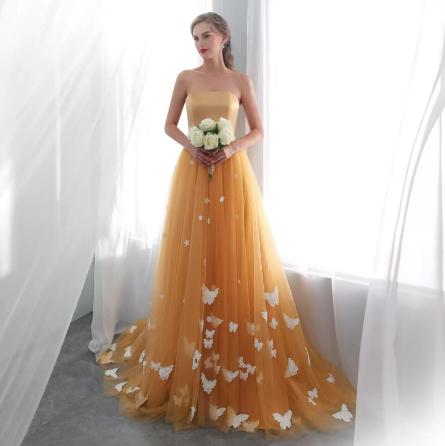 Orange Wedding Dresses Woman Dress Strapless Butterfly A line Bride Ball Gown