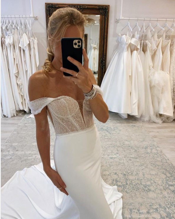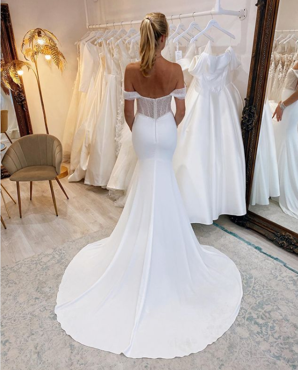 Sexy Off Shoulder Mermaid Wedding Dress, Simple Glamor Beads Bodice Wedding Dress Bridal Dress