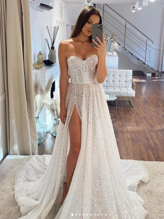Luxury Wedding Dress, Sexy Bling Bling Wedding Dress, Sweetheart Side Split Wedding Gown Bridal Dress