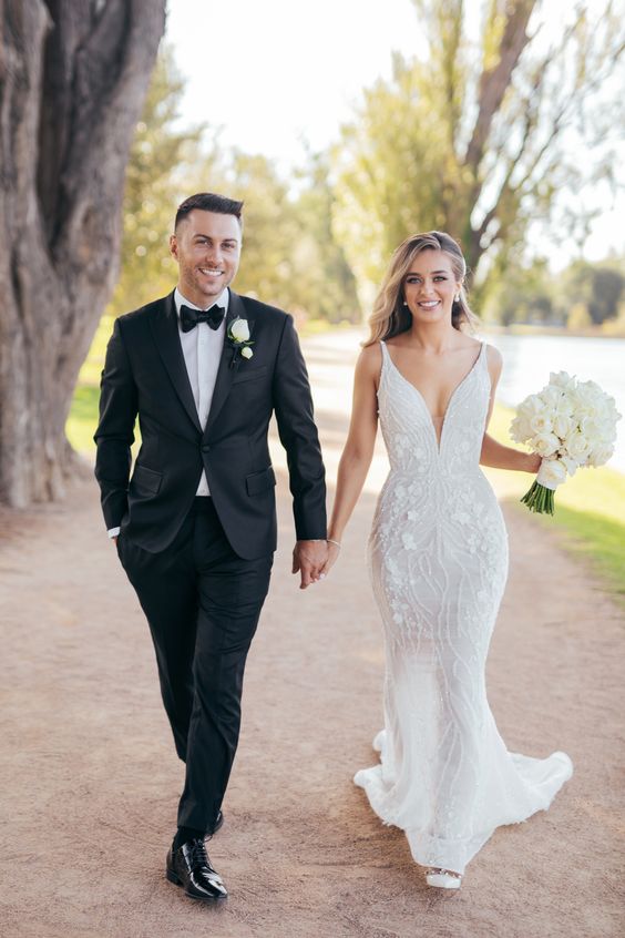Classic Wedding Dress, Mermaid V-neck Wedding Gown, Backless Tulle Bridal Dress