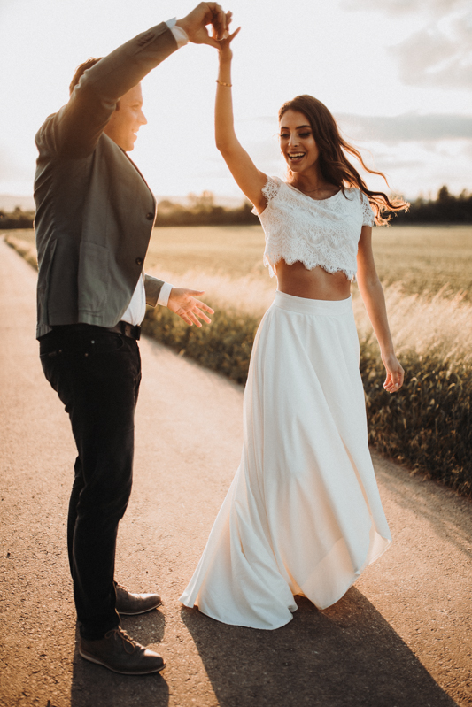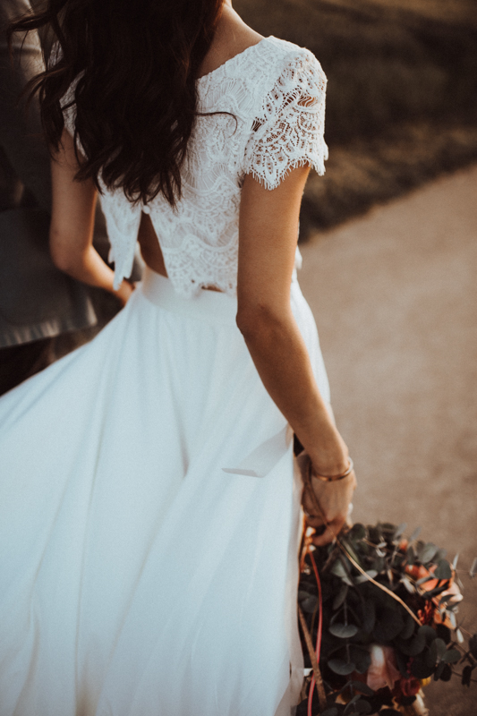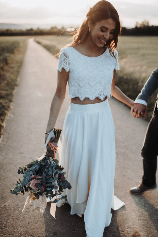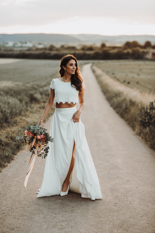 Two Pieces Wedding Dress, A-line Wedding Gown, Lace Top Split Long Bridal Dress
