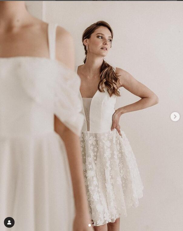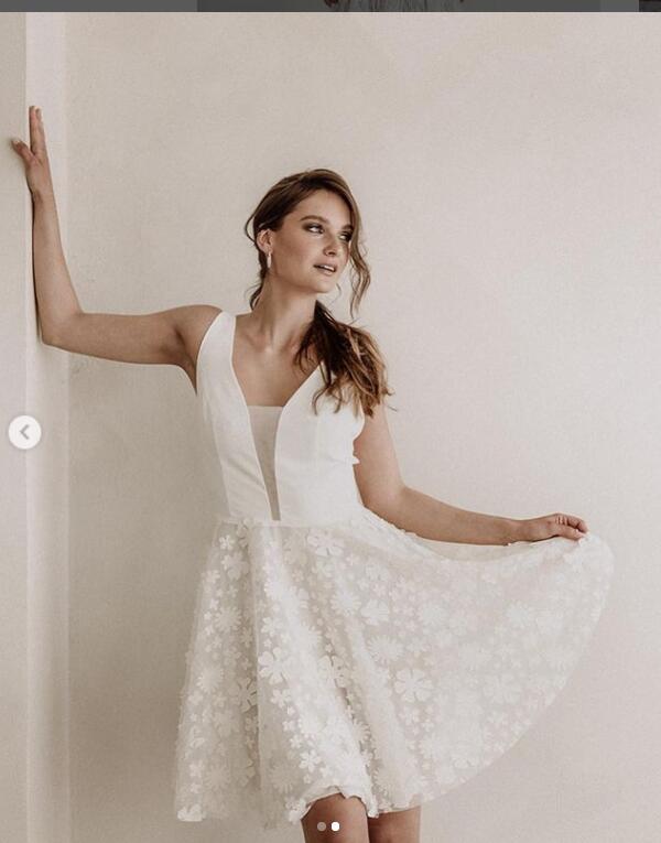 Lace Wedding Dress, Simple Beach Wedding Gown, Mini Short Bridal Dress