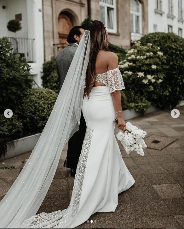 Off the Shoulder Lace Wedding Dress, Simple Beach Wedding Gown, Long Sleeve Bridal Dress