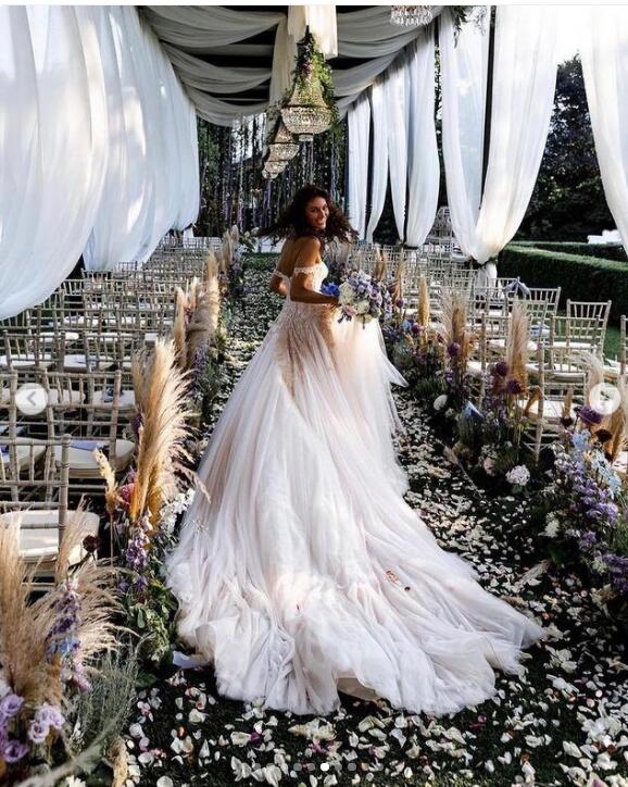 Lace Ball Gown Wedding Dress, Detachable Train Wedding Gown, Lace Up Bridal Dress