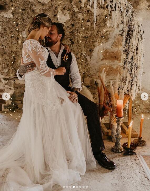 Lace Wedding Dress, Long Sleeve Appliques Wedding Gown, Lace Up Bridal Dress