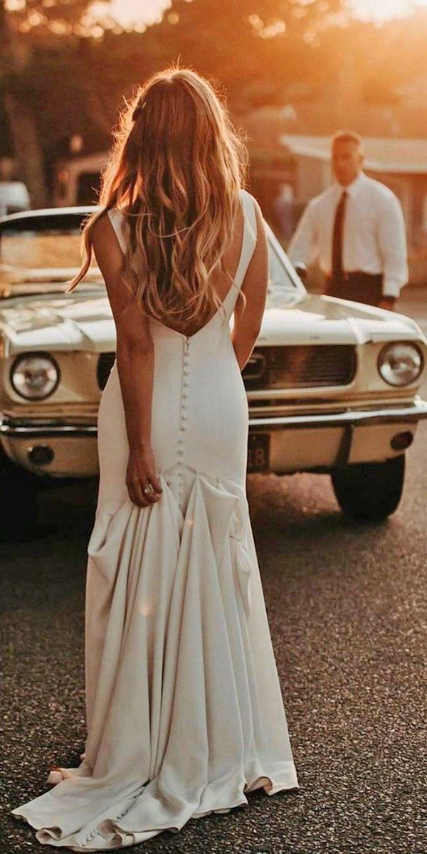 Simple V-neck Satin Wedding Dress Bridal Gown