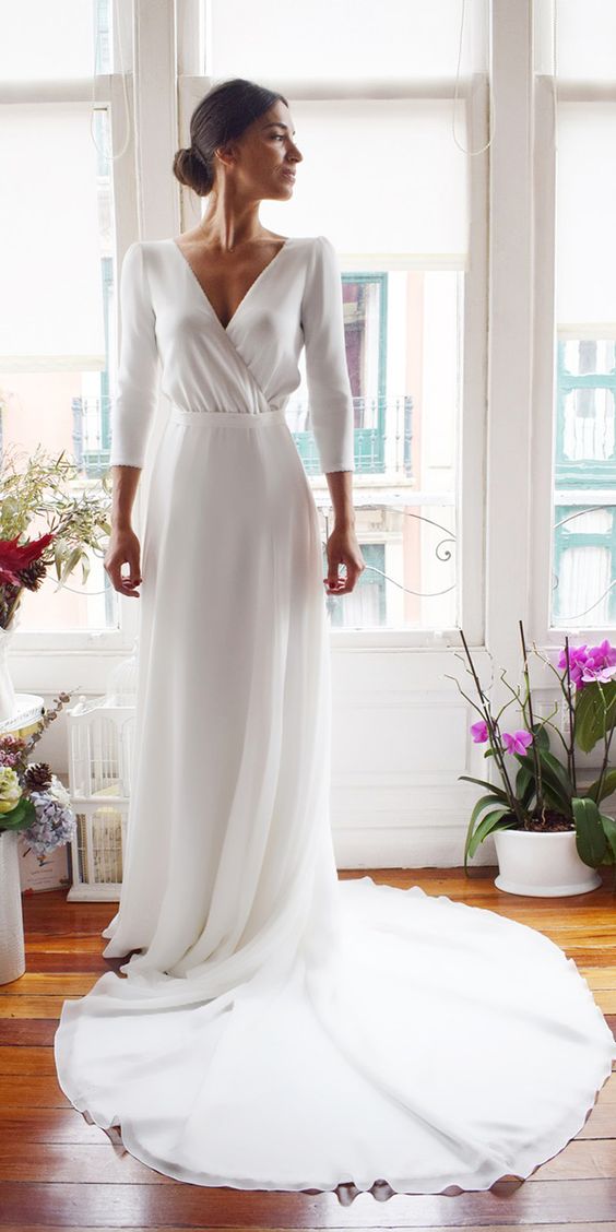 Modest Elegant Wedding Dress, Sheath V-neck Wedding Dress, Long Wedding Gown Bridal Dress