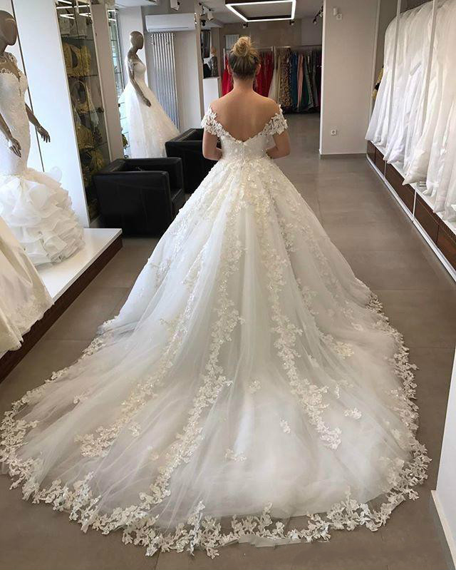 Puffy Skirt Wedding Dresses Modest Off Shoulder Wedding Dress with Appliques
