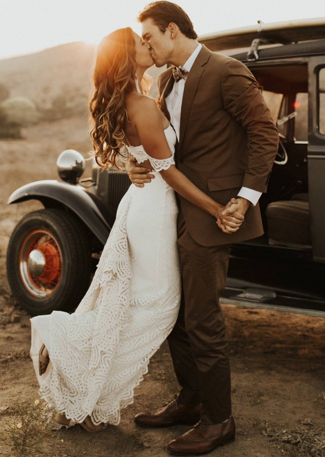 Boho Sexy Mermaid Wedding Dress, Bohemian Wedding Dress, Off Shooulder Lace Wedding Gown