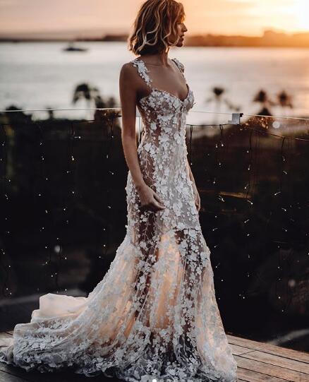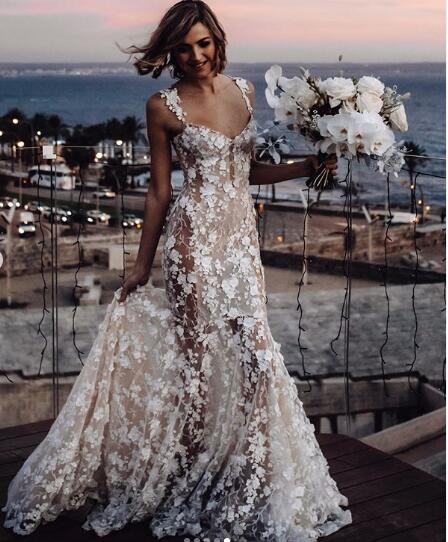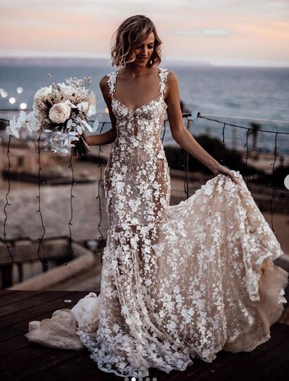 Fabulous 3D Flowers Floral Wedding Dress, Sexy A-line Wedding Dress, Backless Fairy Wedding Dress
