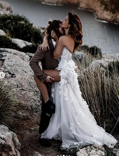 Sexy Wedding Dress, Sweetheart Wedding Dress with 3D Flowers, High split Wedding Dress