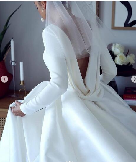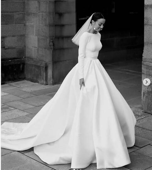 Modest Wedding Dress, A-line Wedding Dress, Satin Wedding Dress