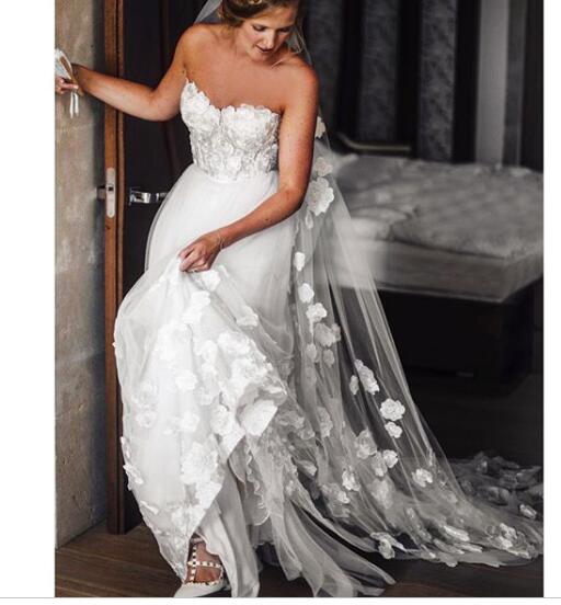 Rustic Wedding Dress, Sweetheart with 3D Flowers Wedding Dress, Beautiful Wedding Dress