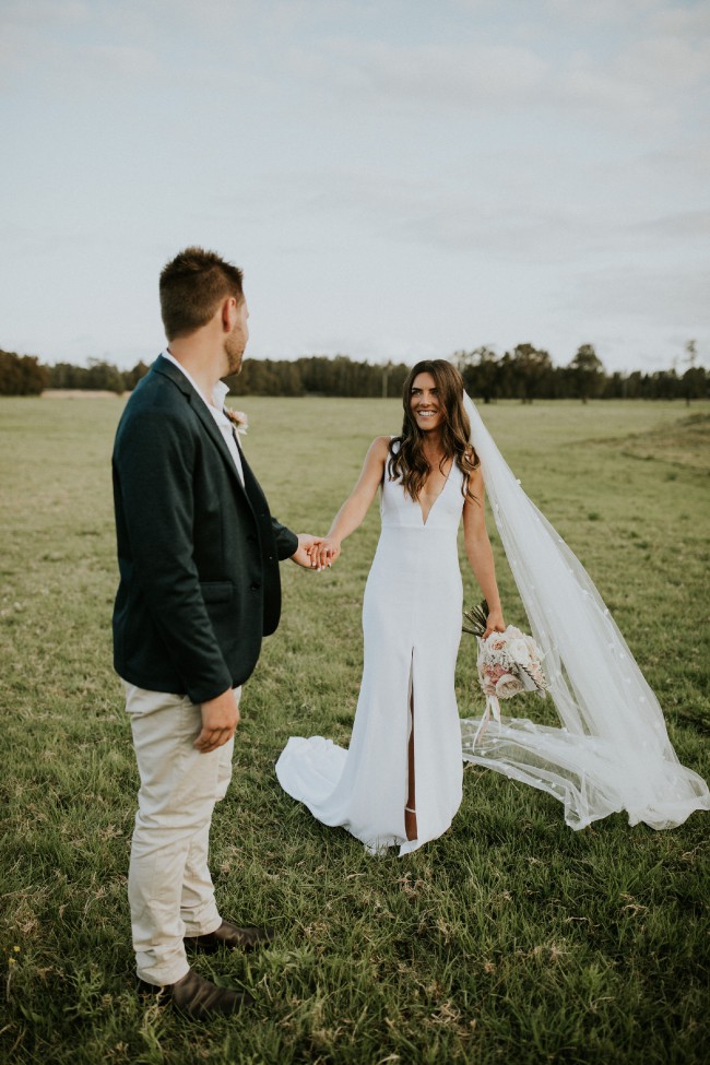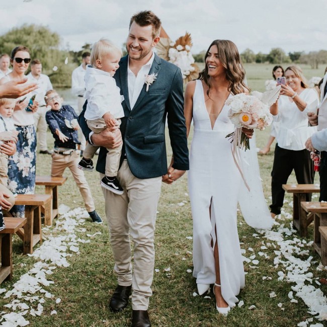 Simple Casual Wedding Dress, Deep V-neck Wedding Dress, Satin Wedding Dress
