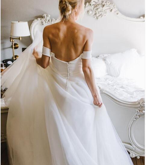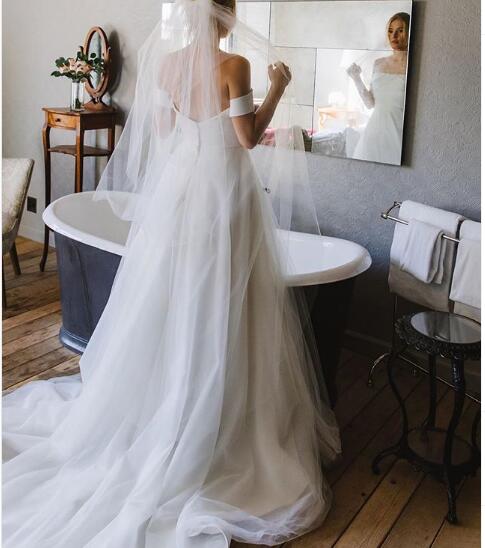 Modest Simple Wedding Dress, Strapless Wedding Dress, Long Wedding Dress