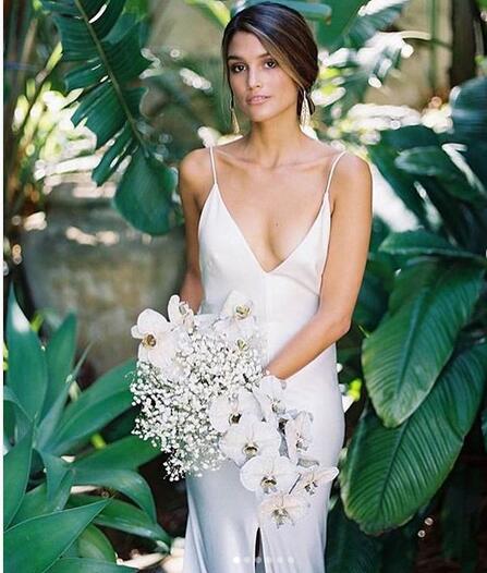 Sexy Backless Wedding Dress, Deep V-neck with Floral Appliques Wedding Dress, Backless Bridal Dress
