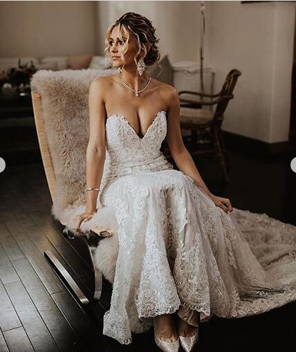 Sexy Sweetheart Wedding Dress, Lace Wedding Dress, Long Bridal Dress