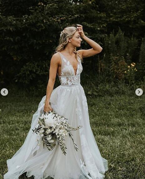 Sexy Wedding Dress, Deep V Neck Wedding Dress, Lace Bridal Dress