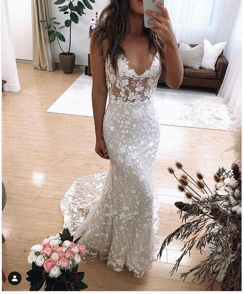 Beach Wedding Dresses Sexy Deep V Neck Lace Bridal Gowns