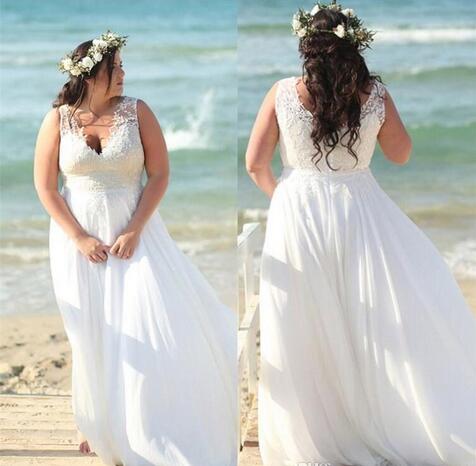 Plus Size Wedding Dresses A Line Boho V Neck Appliques Lace Beach Bride Gowns Chiffon Wedding Gown