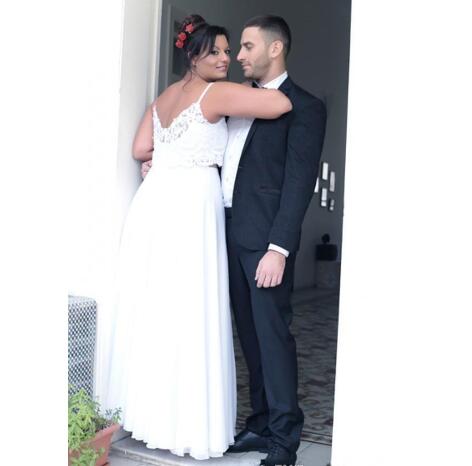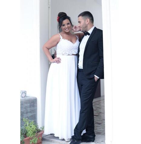 Two Pieces Plus Size A-Line Wedding Dresses Lace Top Sexy Spaghetti Strap Floor Length Bridal Dress Summer Chiffon Beach Wedding Gowns