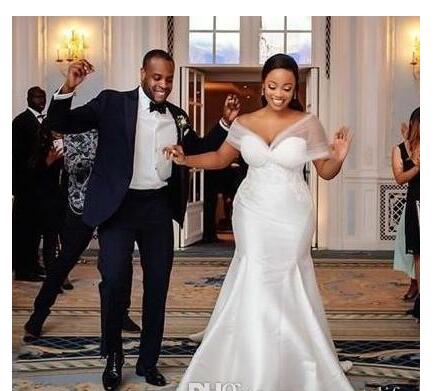 White Off Shoulder South African Mermaid Sexy Wedding Dresses Applique Plus Size Bridal Gown robes de mariée