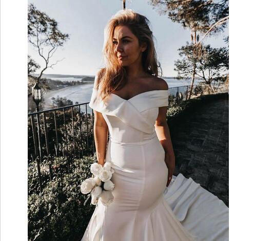 Simple Satin Mermaid Wedding Dresses Off The Shoulder Sweep Train Bride Gown Vestido de novia Back Zipper Wedding Gowns