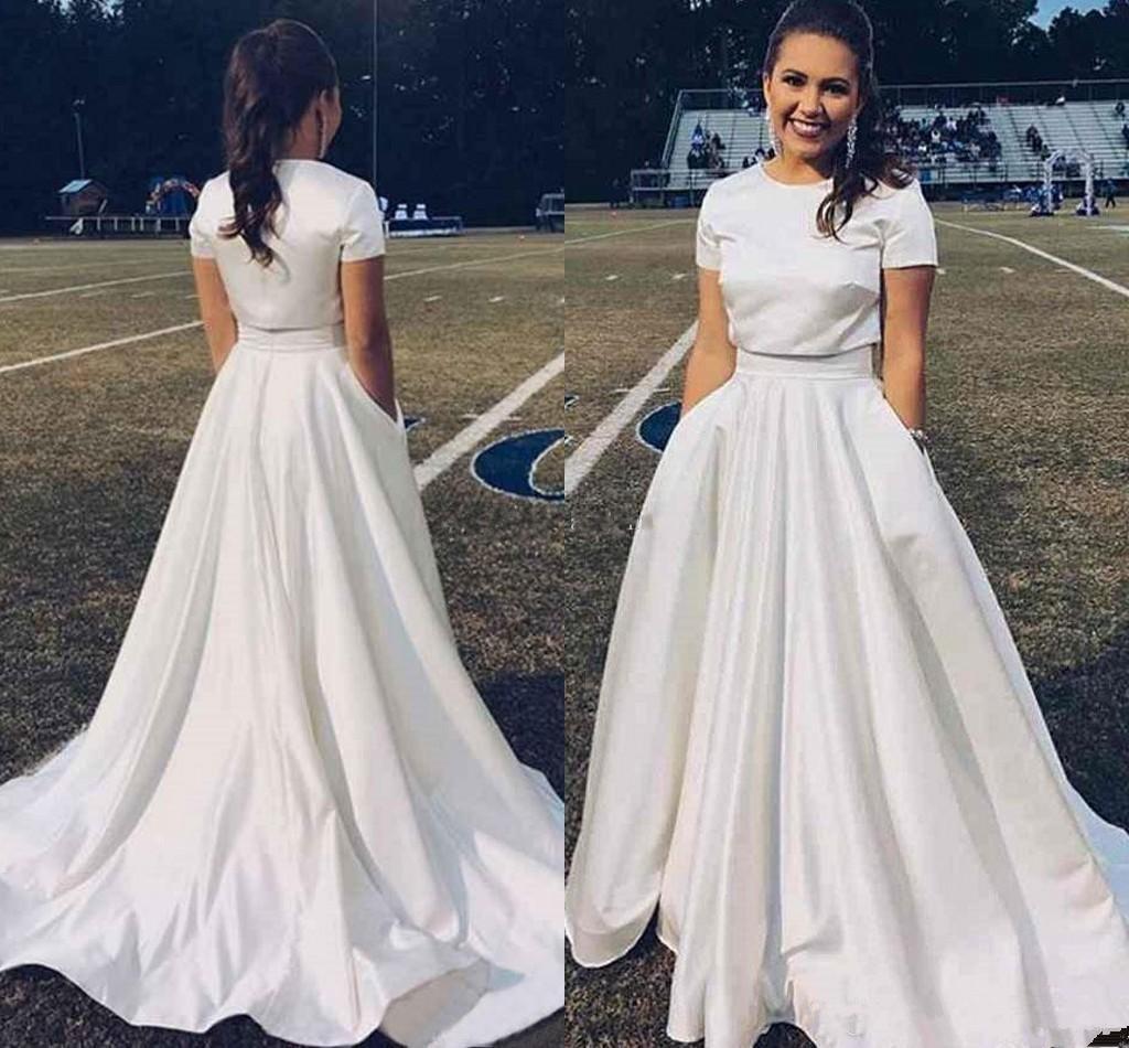 Simple A Line Wedding Dresses with Pockets Short Sleeves Two Pieces Wedding Gowns Sweep Train Cheap Bride Dress