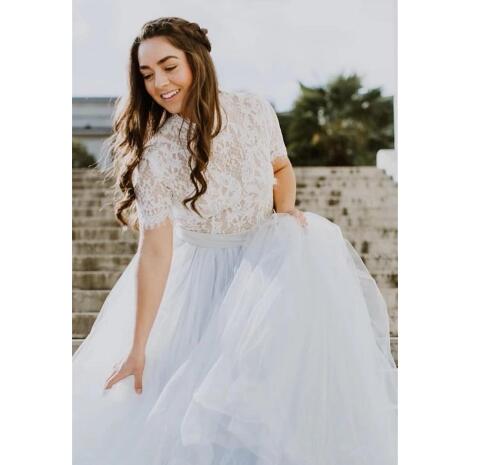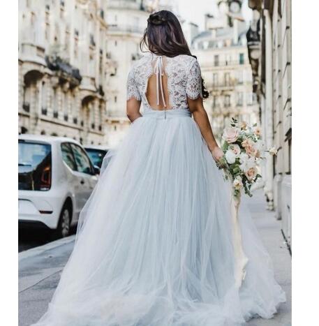 Lace Boho Wedding Dresses Short Sleeves A Line Tulle Sweep Train Vestidos De Novia Plus Size Jewel Neck Backless Bridal Gown