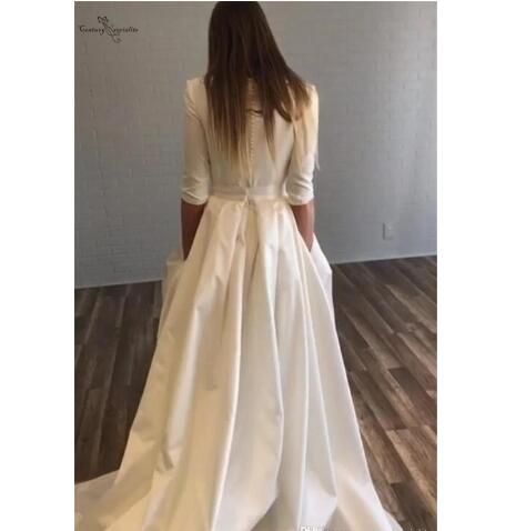 Elegant Satin Wedding Gowns O-Neck Half Sleeves A-Line Simple Bride Dress Vestido De Noiva Robe De Mariee