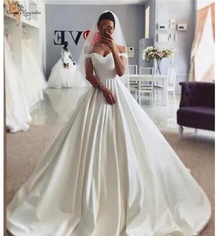 Simple Wedding Dresses Off Shoulder Lace Up Back Simple Bridal Gowns Bride Dress Plus Size