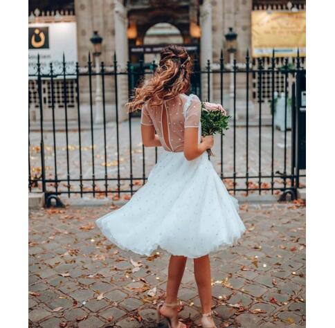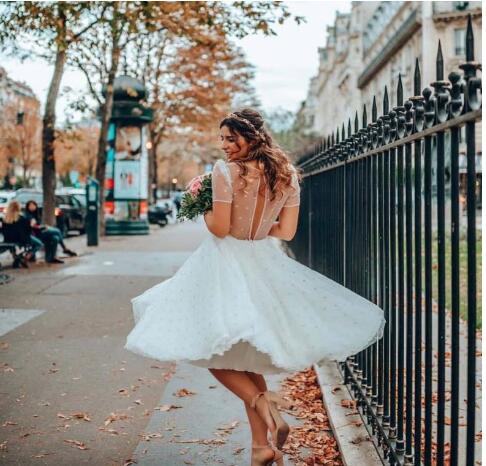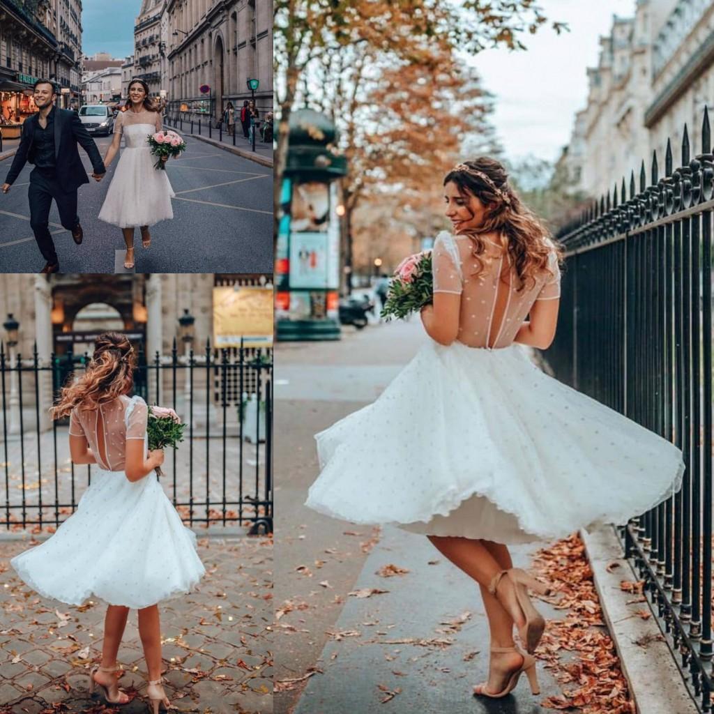 Vintage Short Beach Wedding Dresses 2020 Robe de mariee Lace Bohemian Summer Holiday Country Bride Reception Wedding Gown