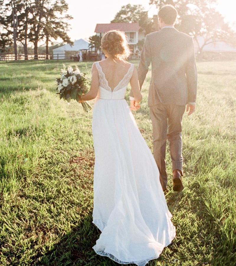 Bohemian Beach Wedding Dresses Chiffon with Lace Sexy Wedding Gowns Sweep Train Bridal Dress Custom Made