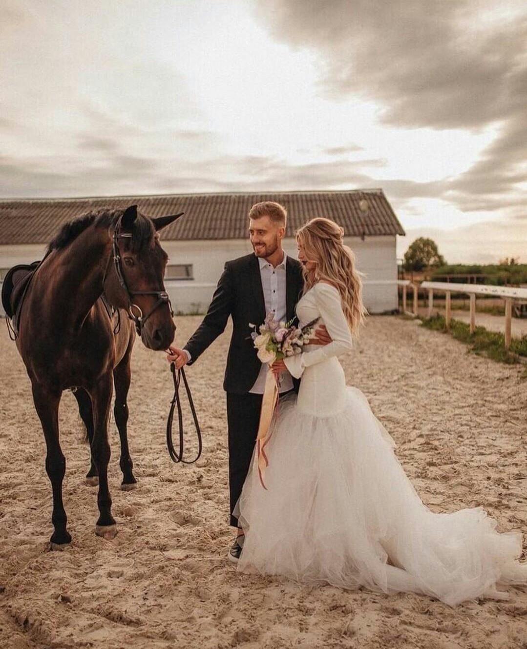 Two Pieces Mermaid Wedding Dresses Boho Long Sleeve Bridal Gowns Country Tulle Beach Sweep Train Wedding Dress Robes