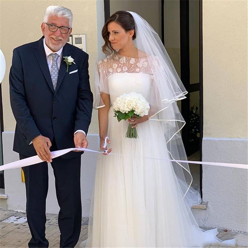 Charming Strapless Tulle Bridal Wedding Dresses with Wrap Appliques and Beads Gowns Custom Made Formal Dresses