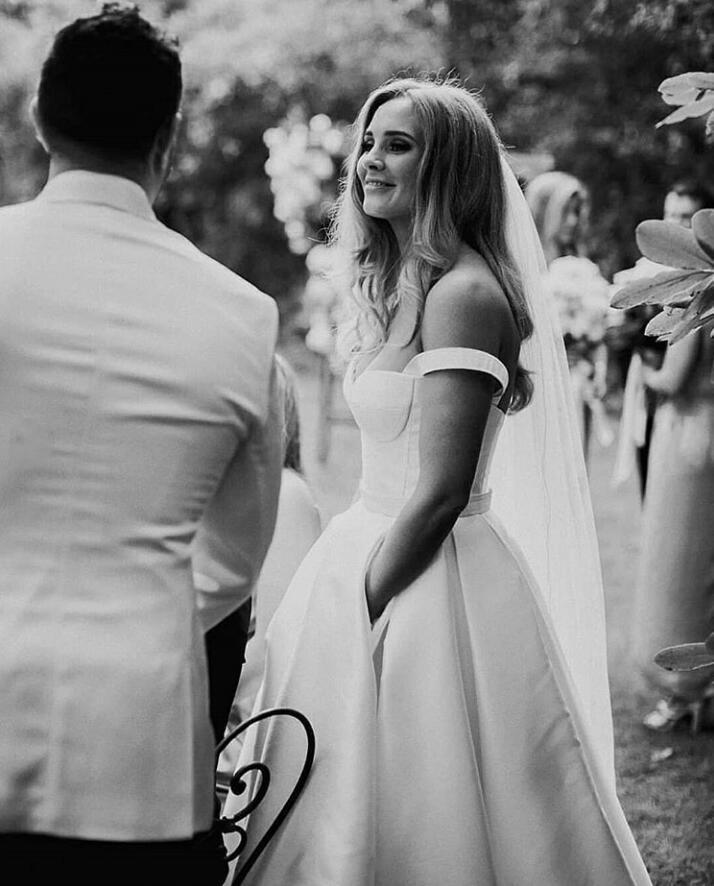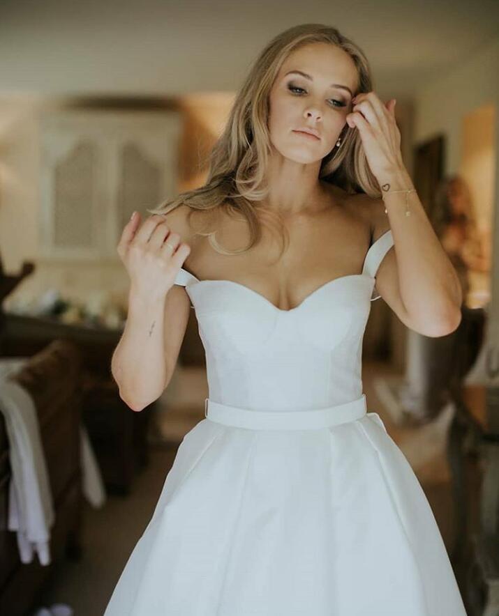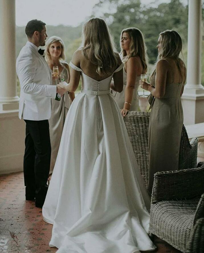 Simple Off The Shoulder Satin Wedding Dresses Bridal Gowns Plus Size Covered Button Sweep Train Wedding Dress vestidos de novia