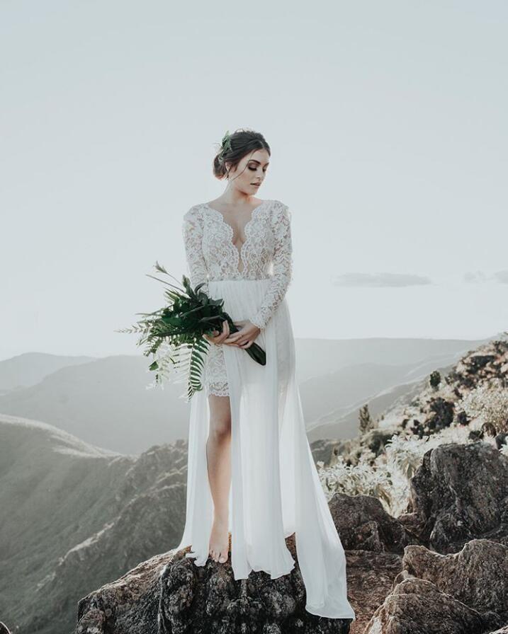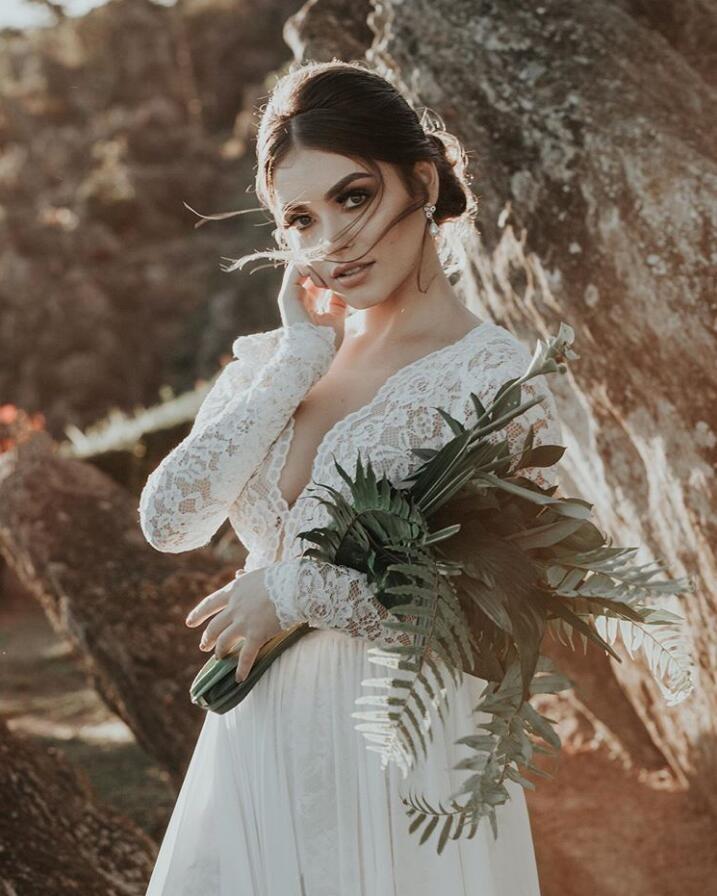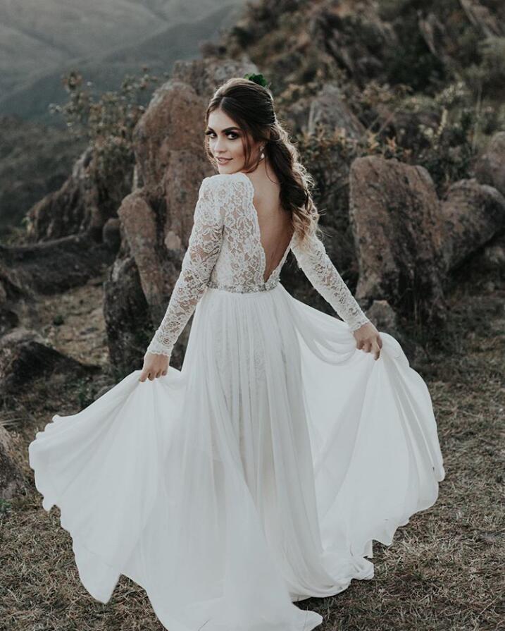Sexy V Neck Lace Short Wedding Dresses with Chiffon Overskirts Long Sleeves Summer Bride Gowns Backless Vestidos De Novia