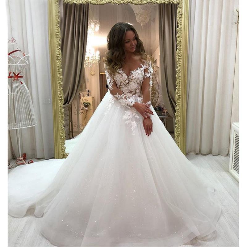 Luxurious Wedding Dresses White Tulle Organza Long Sleeves Floor-length Bridal Gowns A-line Chapel Train Custom Made Robe De Mariee