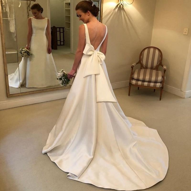 Satin Backless Wedding Dresses For Women vestido de noiva Bows Bridal Dress Country Backless Wedding Dress Plus Size