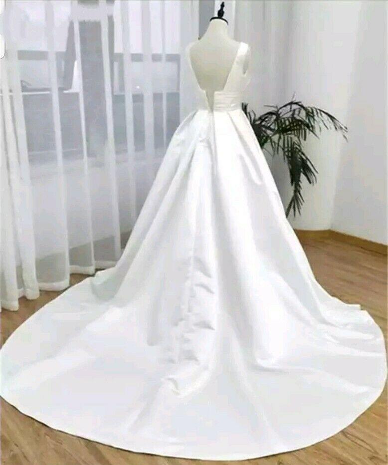 Satin Bridal Gown Sleeveless A Line Wedding Dresses Deep V-Neck Bodice Wedding Gowns Backless vestidos de novia