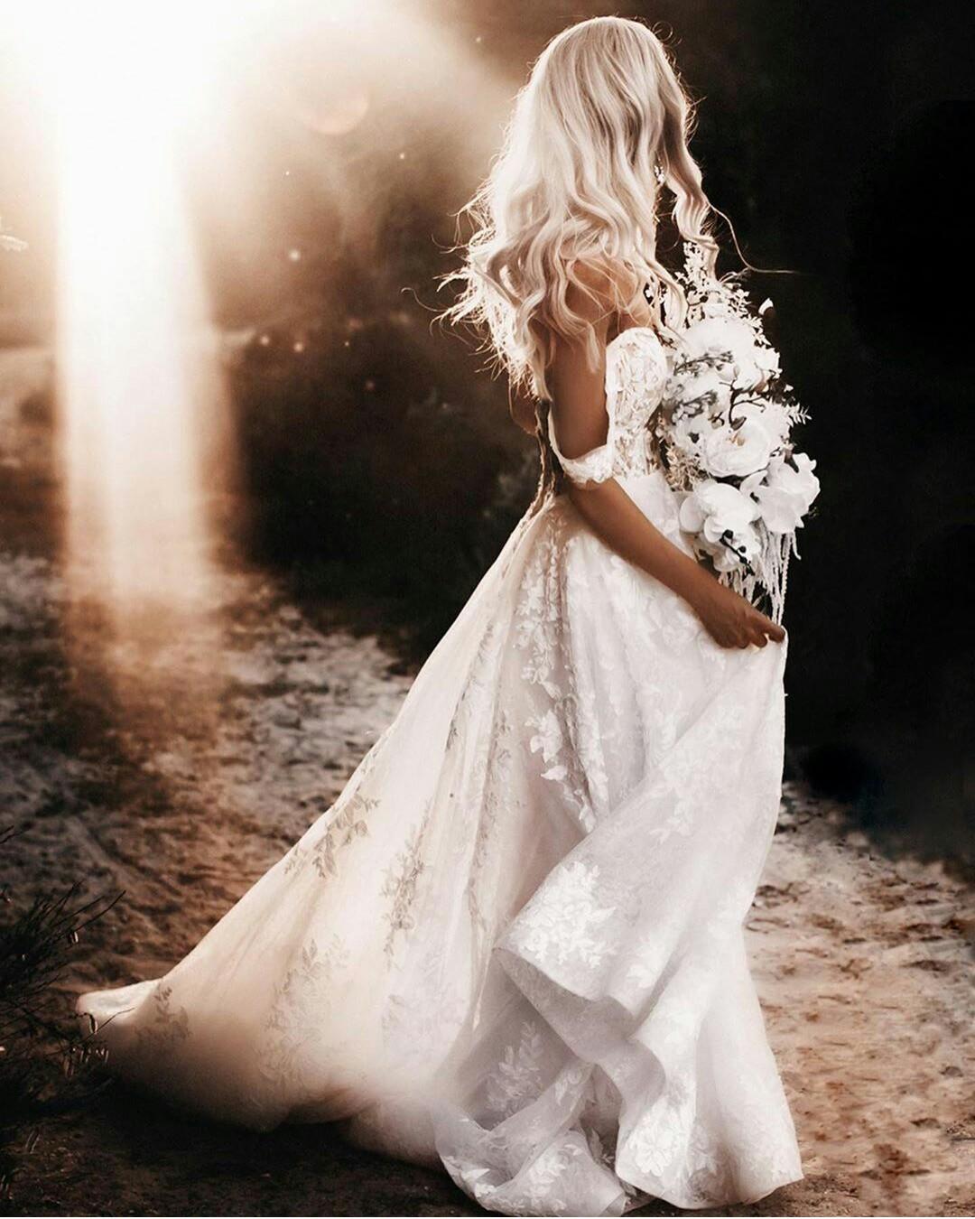 Off Shoulder Country Wedding Dresses Backless Lace Tulle Boho vestido de novia Sexy Beach Bridal Wedding Gowns