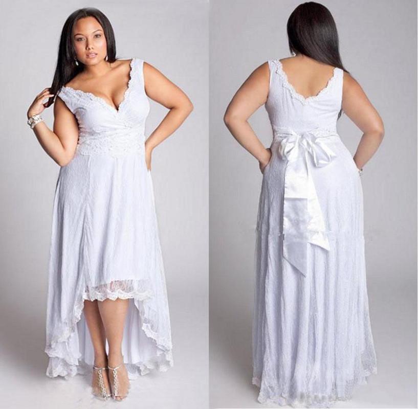 High Low A-Line Wedding Dresses Summer Beach Applique Lace Sleeveless V-Neck Garden Bridal Gowns Vestidos De Noiva