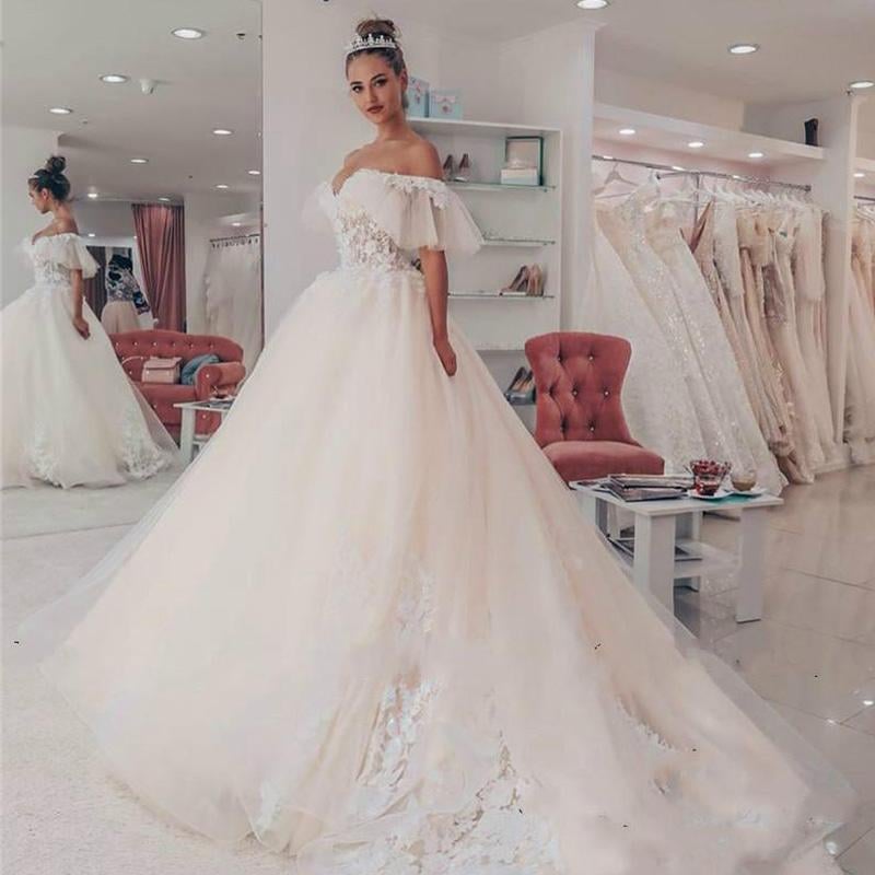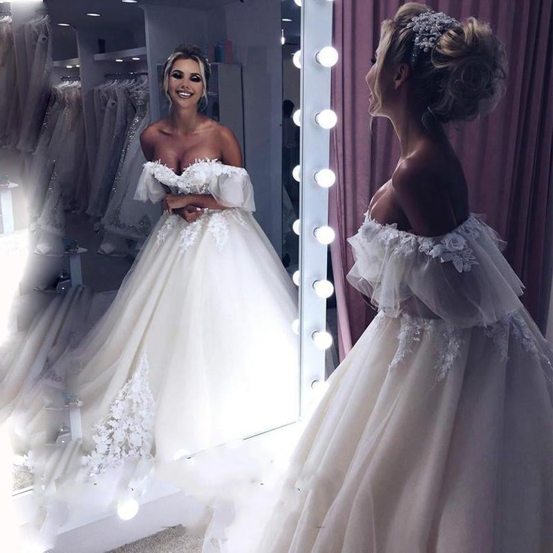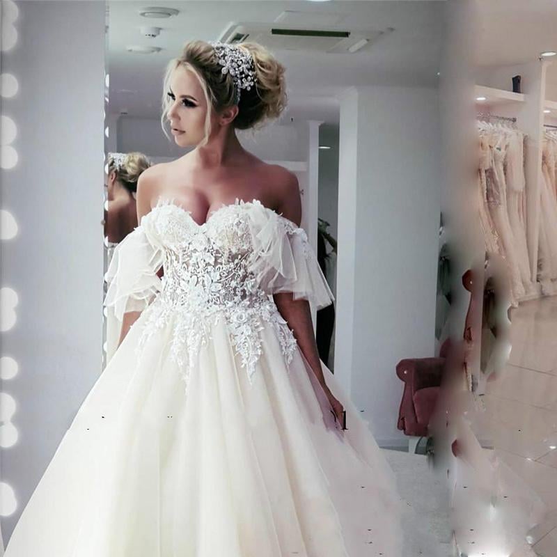 Sexy Sweetheart Wedding Dress Off the Shoulder Lace Appliques A-line Dress Sweep Train Bridal Gown Vestido De Noiva